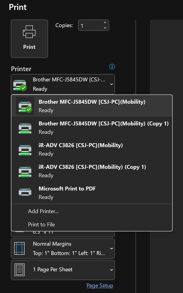 When you’re ready to print, simply select the printer you would like to print to from the available printers.