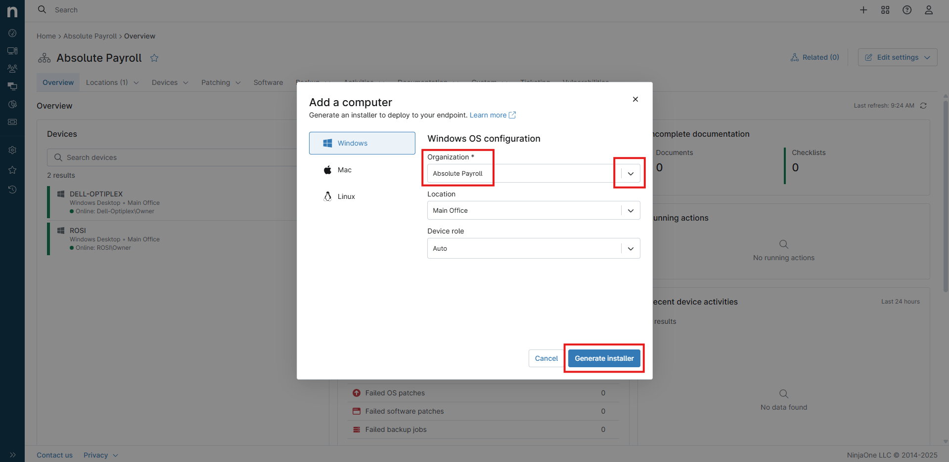 Follow the steps below to generate and deploy a NinjaOne installer for a new device.