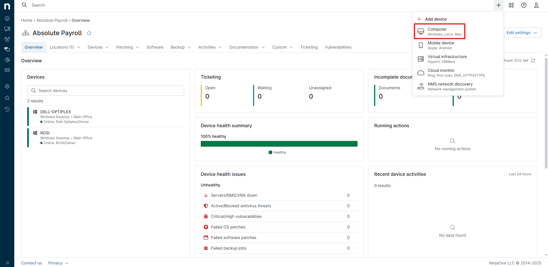 Adding a Device to NinjaOne
