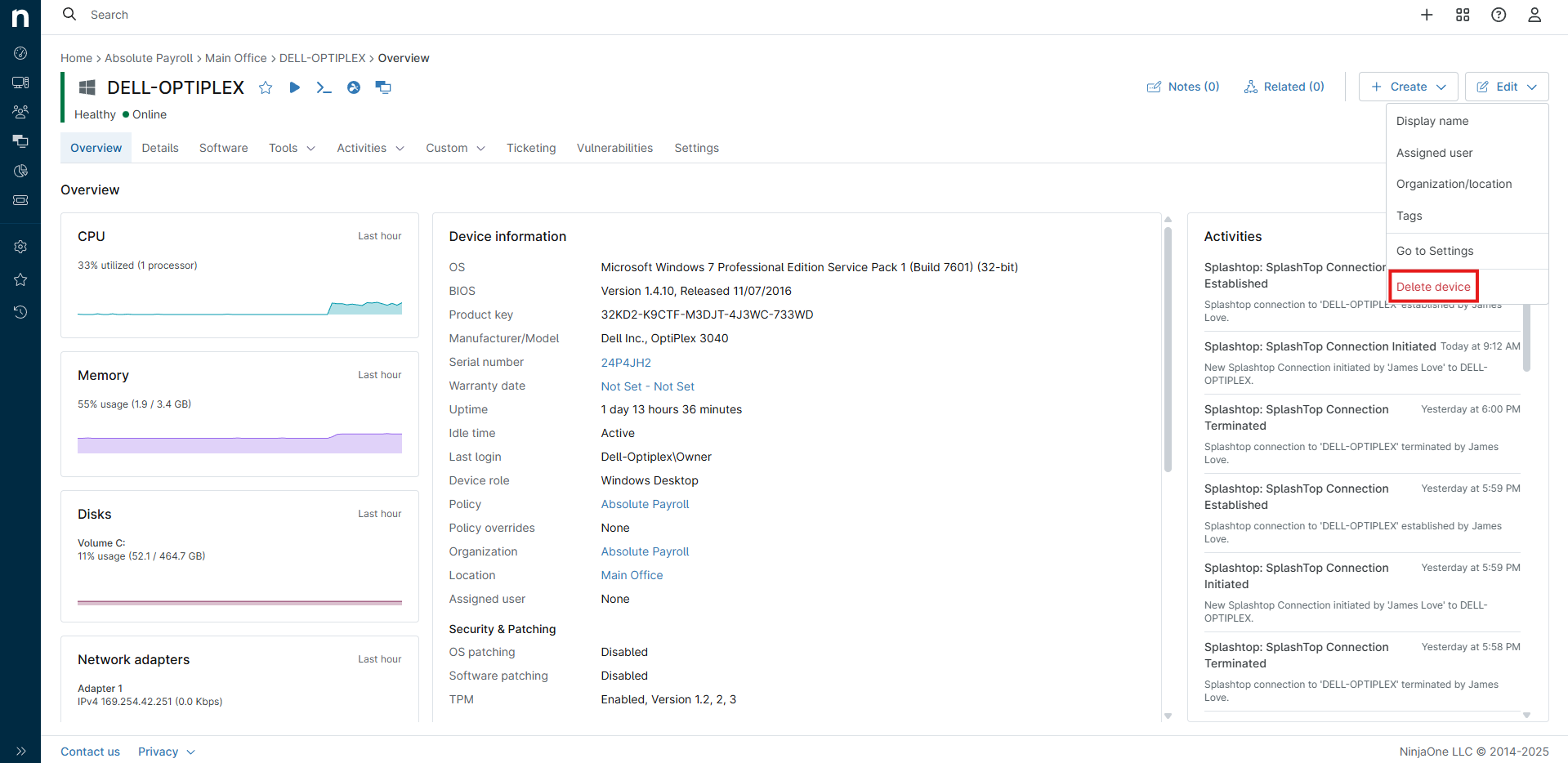 Removing a Device From NinjaOne